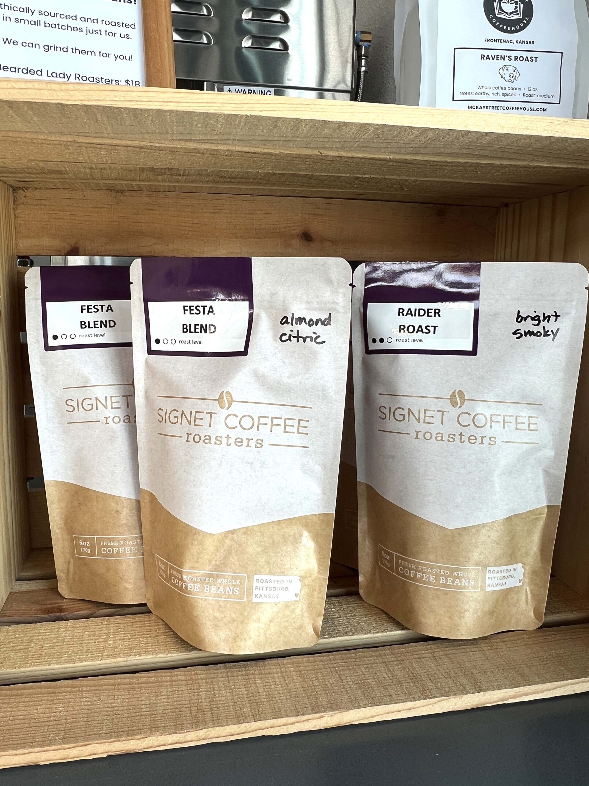 The locally owned coffee shop sells Signet Coffee Roasters beans, a Pittsburg-based roastery operated by a couple who admittedly became coffee lovers later in life. You can also purchase scones, muffins, and bottled drinks.