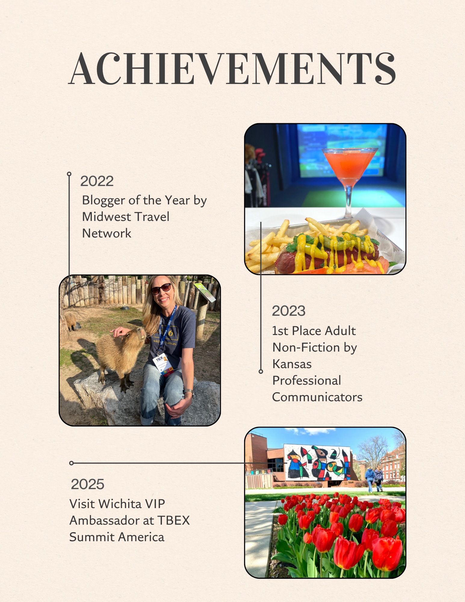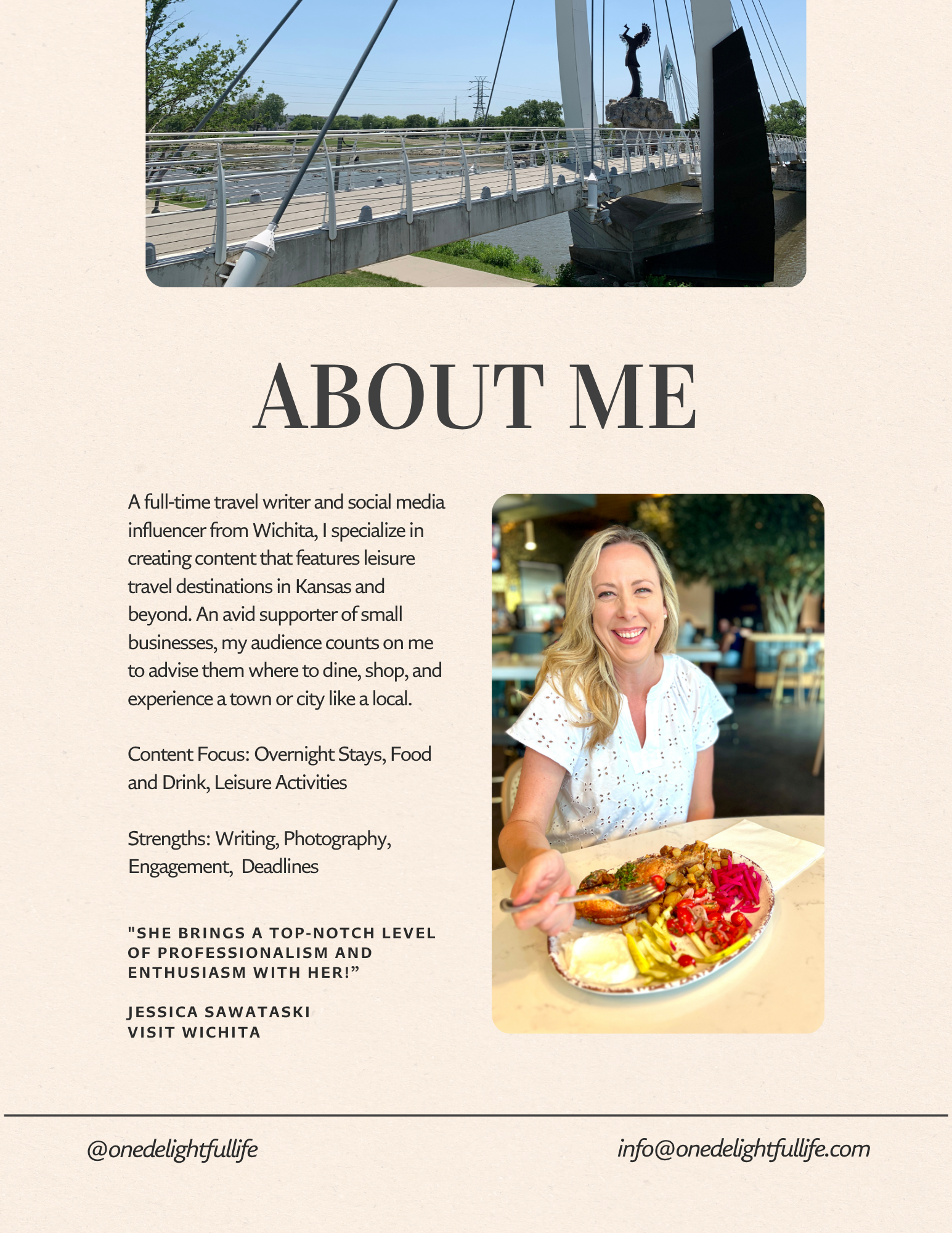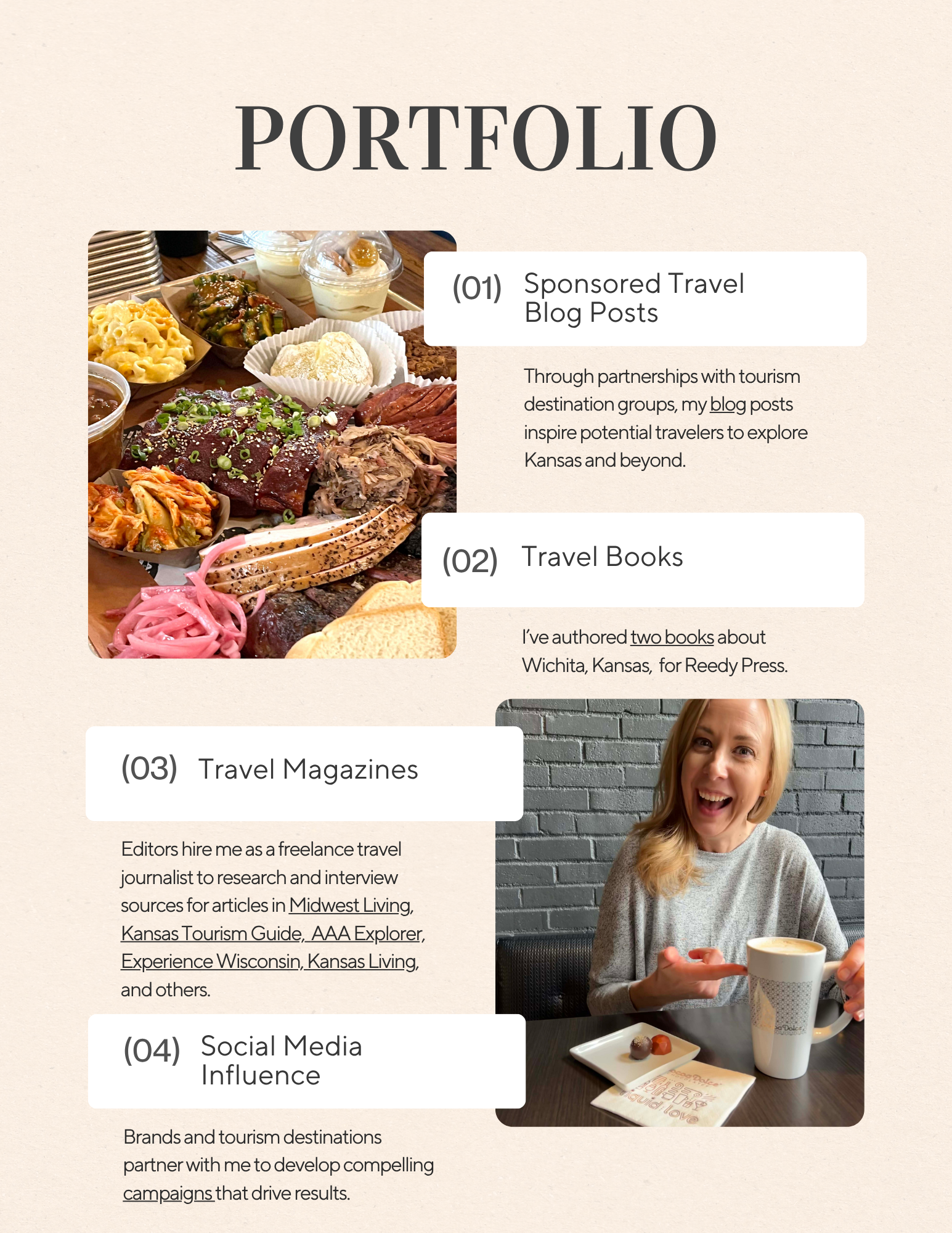 Ask me about my work with brands like Boulevard Brewing Company, Mokas USA, Freddy’s USA, or Visit Wichita. If you’re interested in collaborating on a social media campaign to reach people who are interested in food and travel, contact me at [email protected]